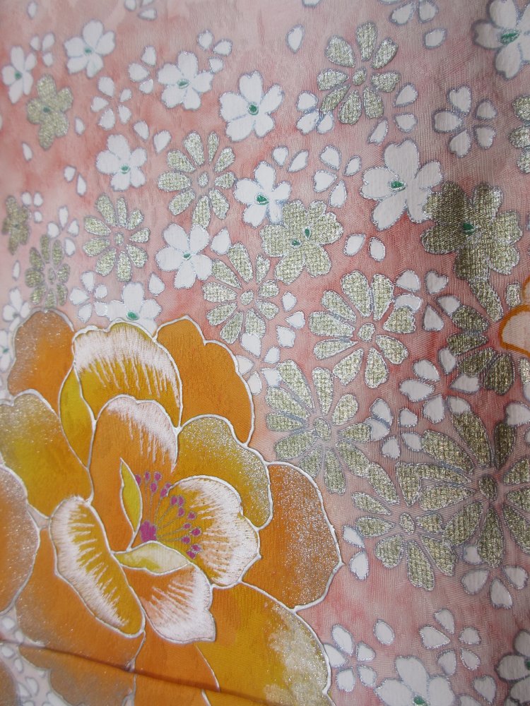 最高級の生地を使い手染めの柄に刺繍とプラチナ箔で